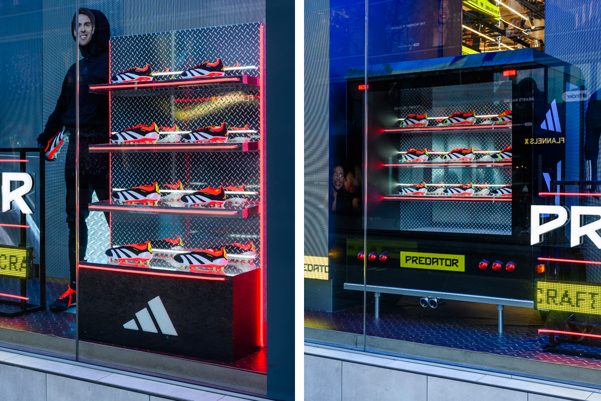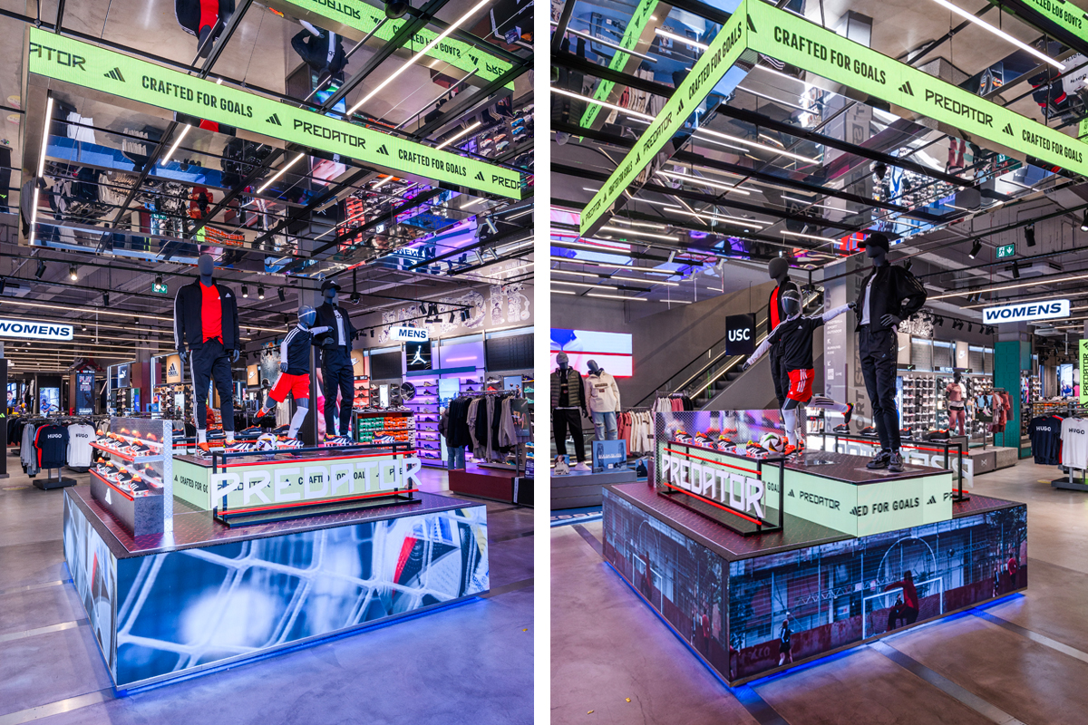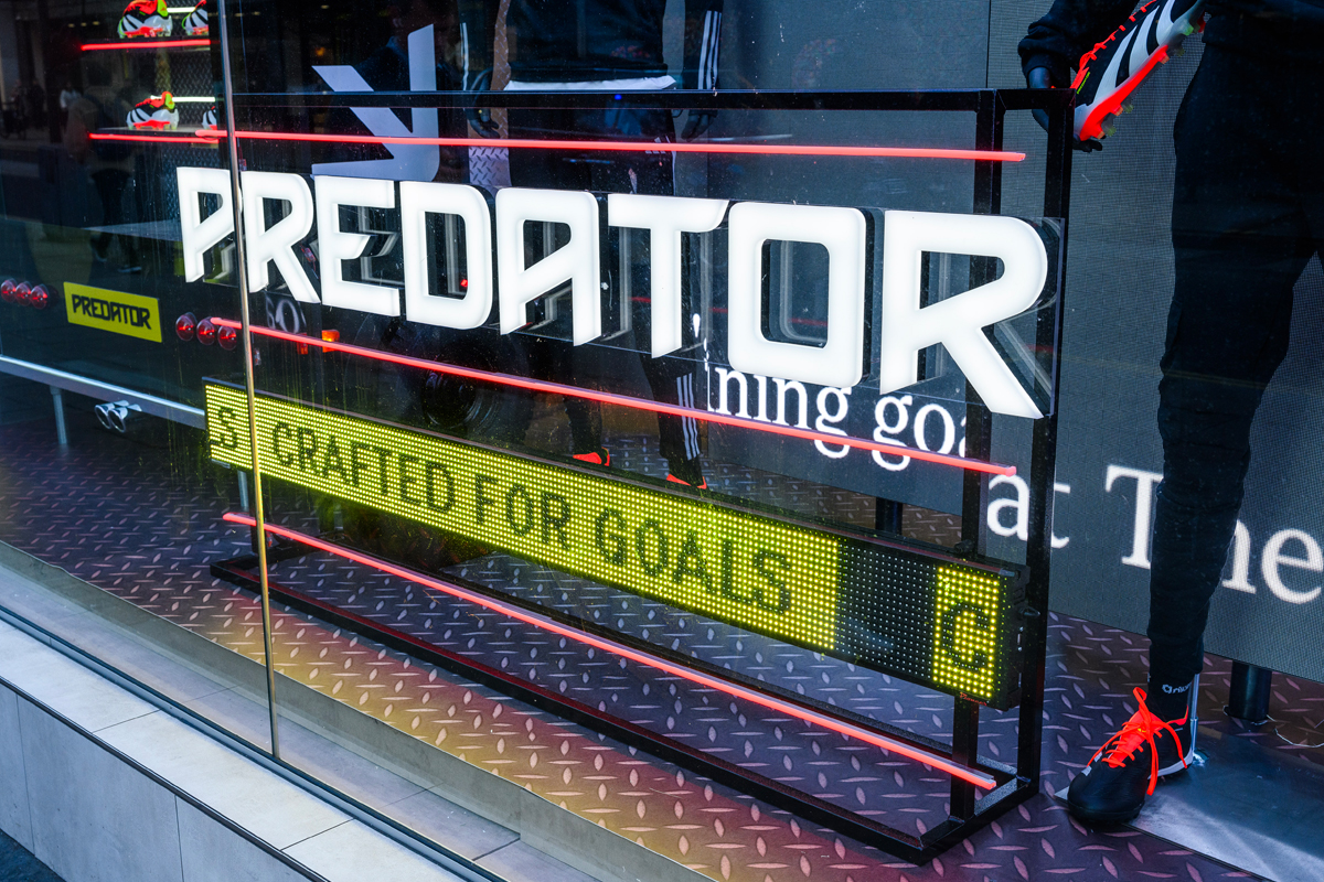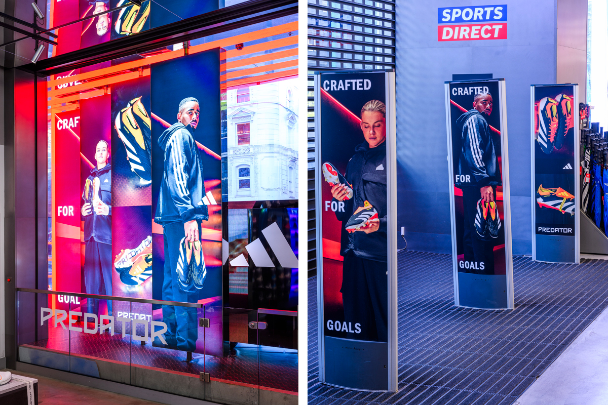 WAR designed, developed and installed the Adidas Predator campaign for Sports Direct stores in Oxford Street London, Birmingham and Manchester.