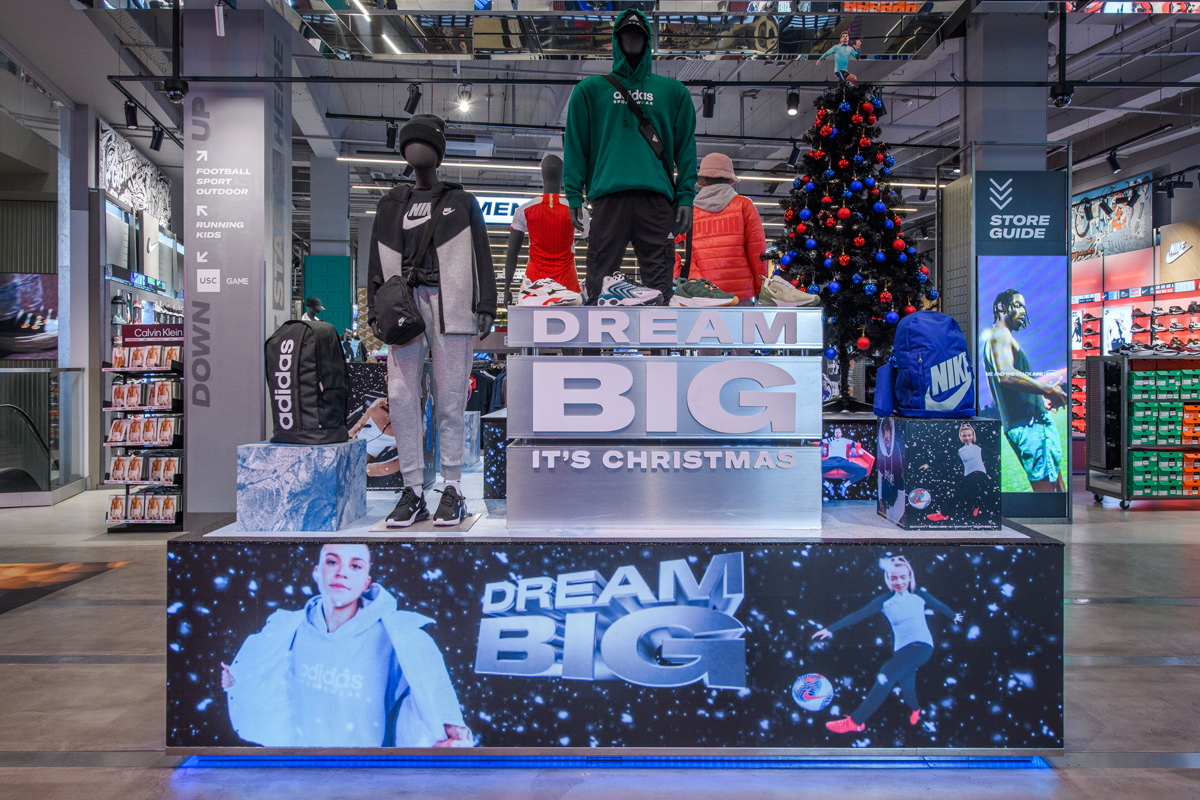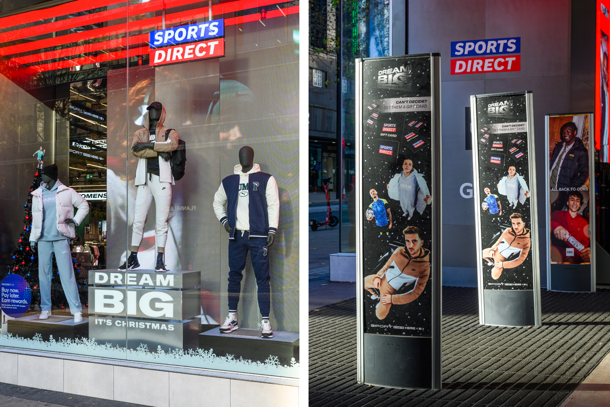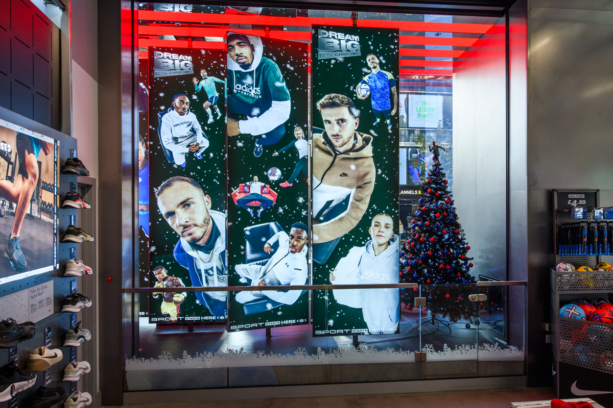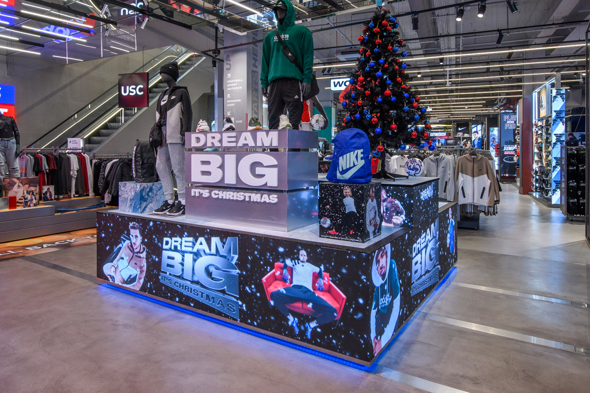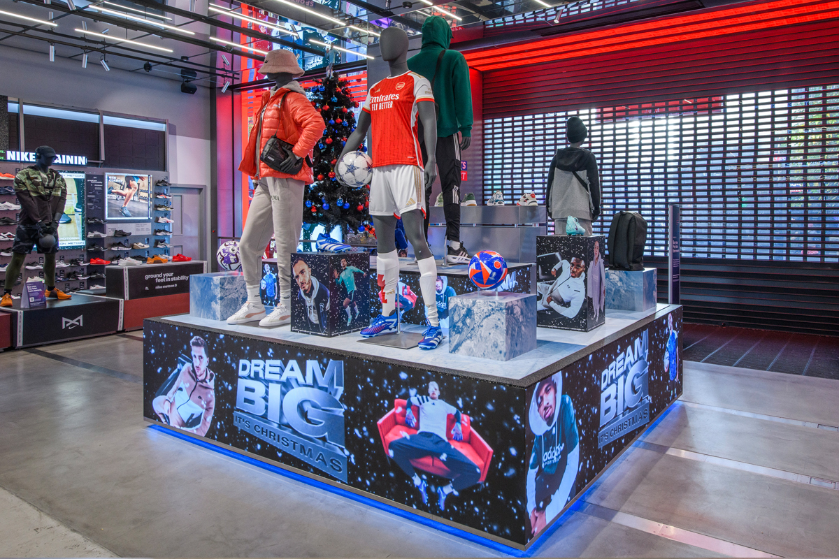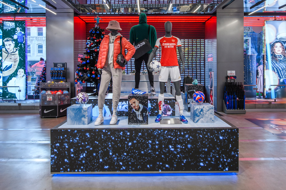 Taken from the Sports Direct Christmas toolkit, #WAR was commissioned to design, manufacture, and install window and launch zone displays across all four flagship stores. Each display was engineered for durability and high footfall, with careful attention to structural integrity and precision fabrication. The project involved coordinating multiple locations to ensure consistency and impact, delivering a technically sophisticated rollout that enhanced the festive in-store experience.