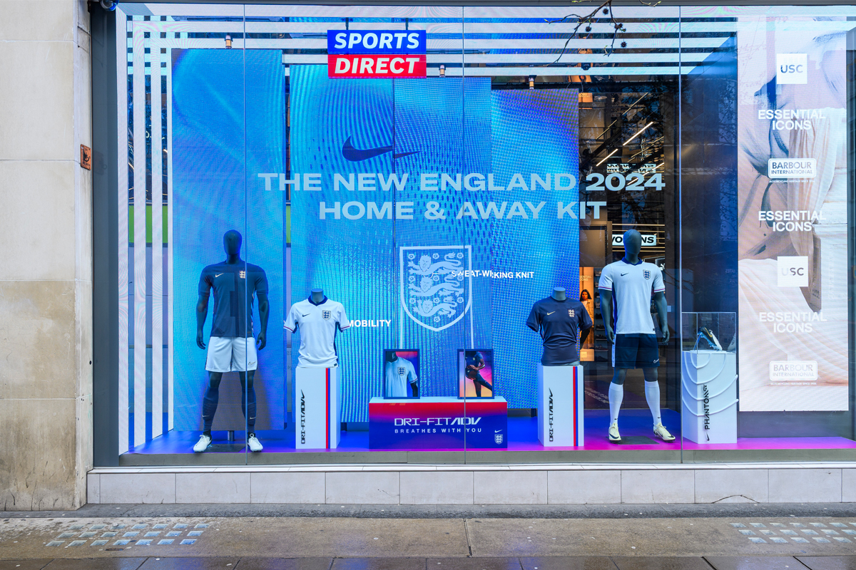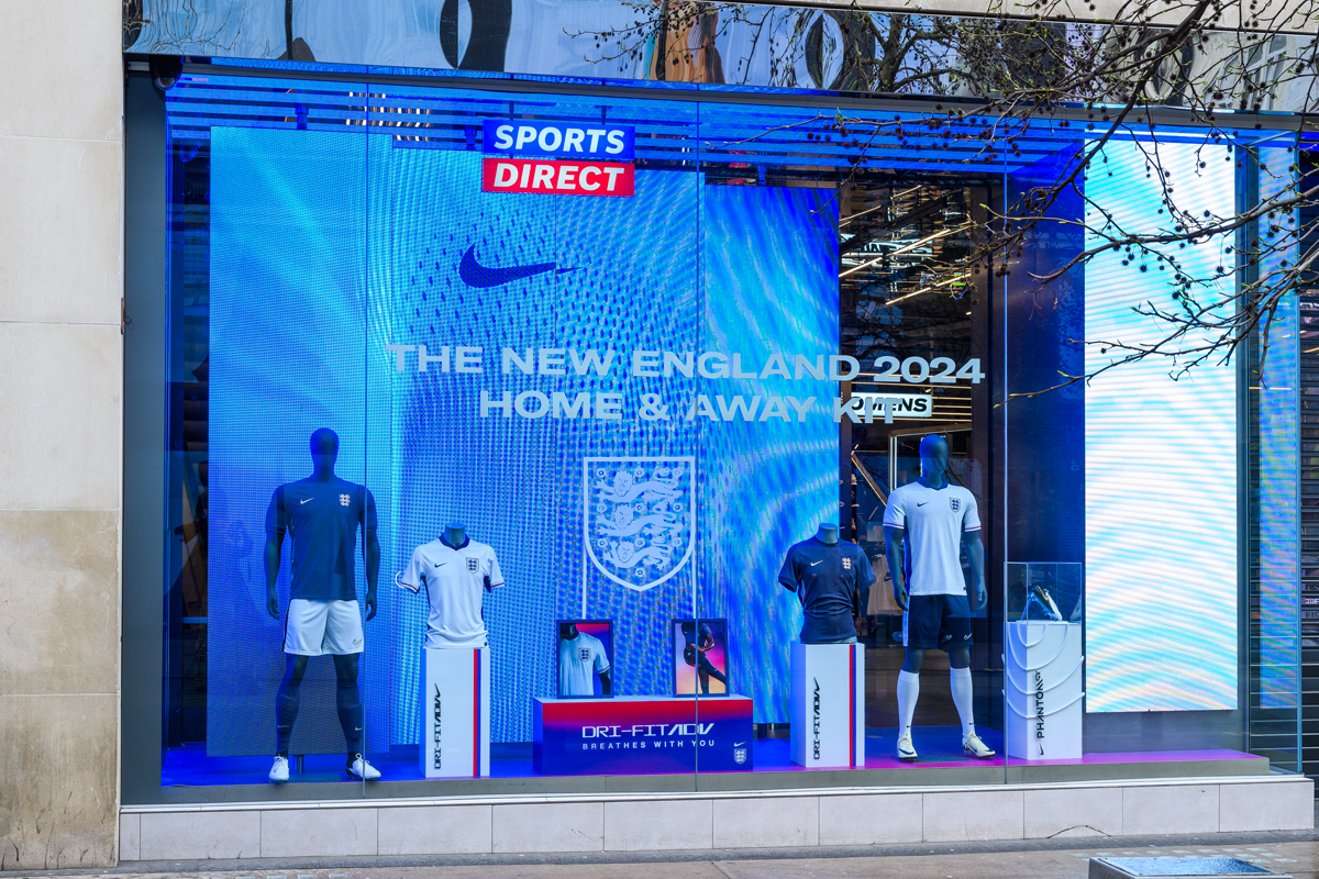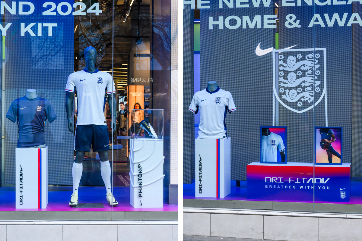 #war celebrated the launch of the Nike England campaign at Sports Direct’s flagship stores in London, Birmingham, and Manchester. Featuring striking window displays, custom shirt plinths, and bold internal POS, #WAR brought the energy of the team and the campaign to life with a cohesive and eye-catching in-store experience.