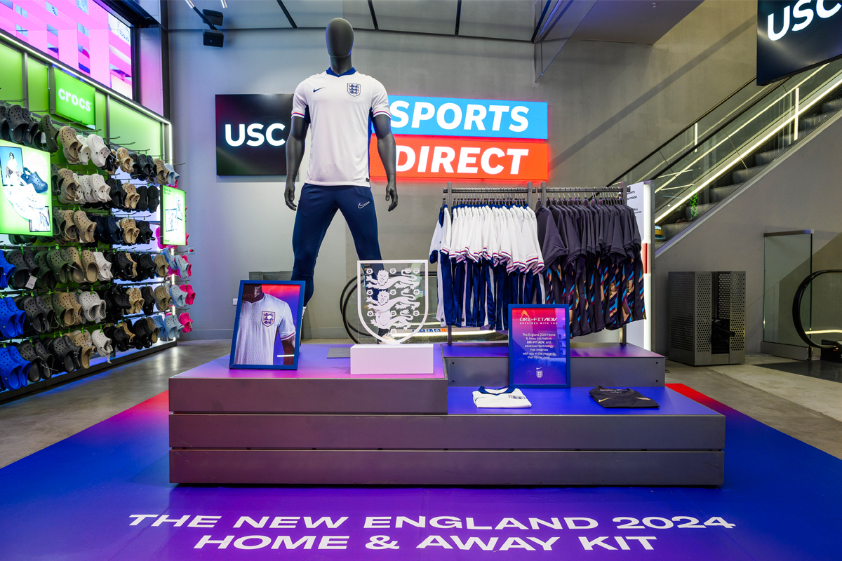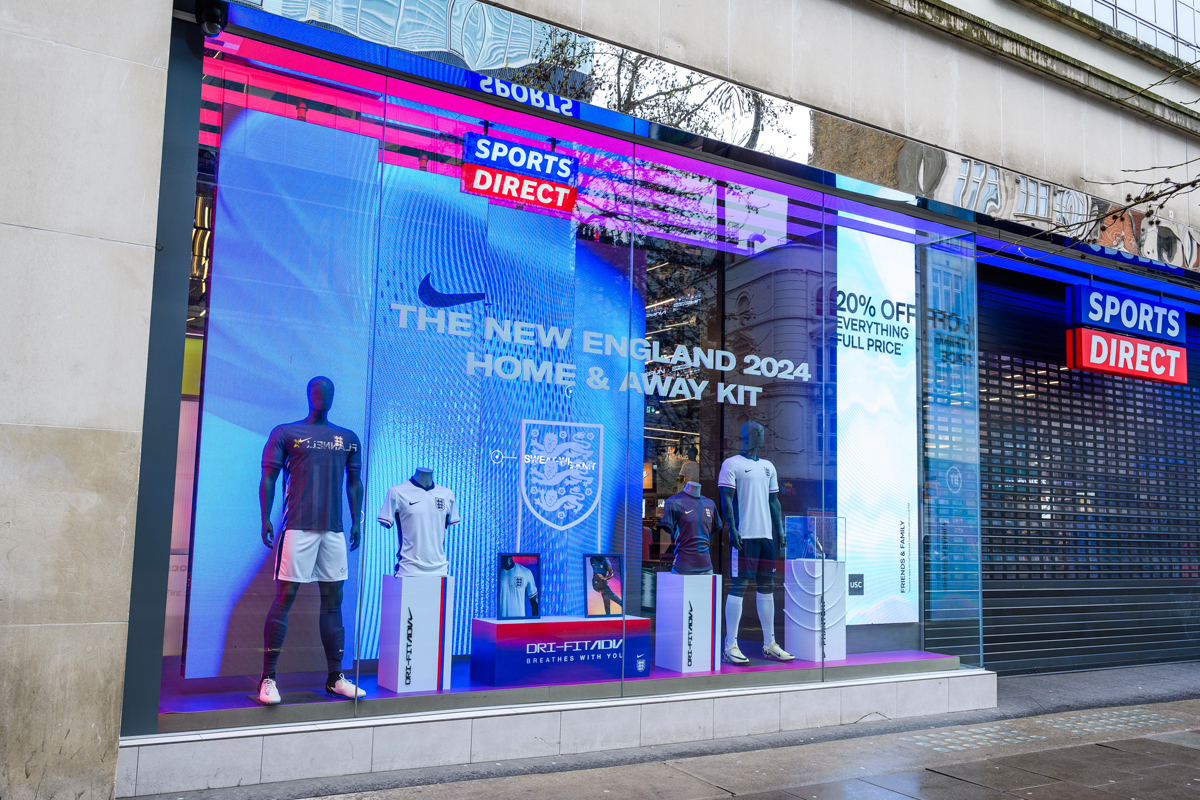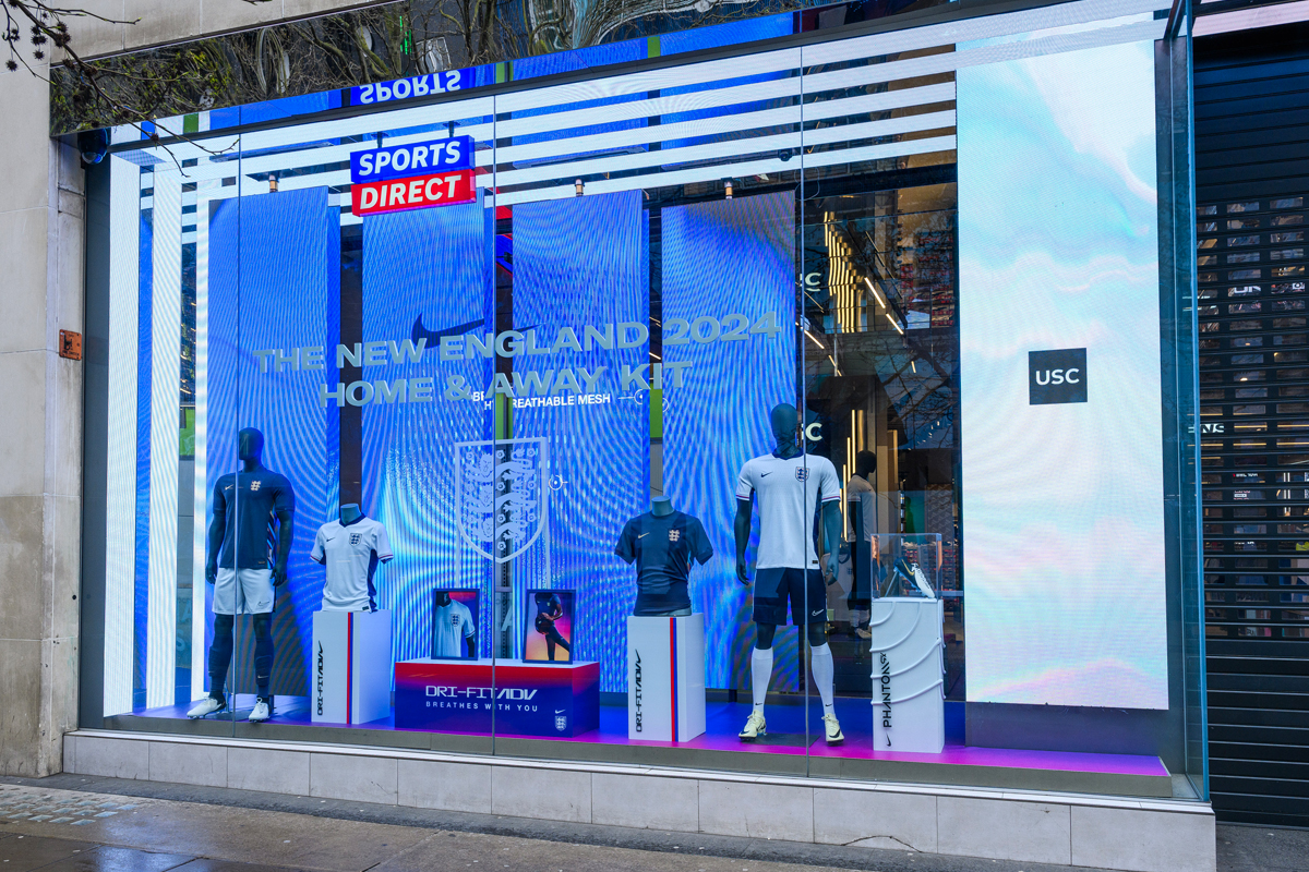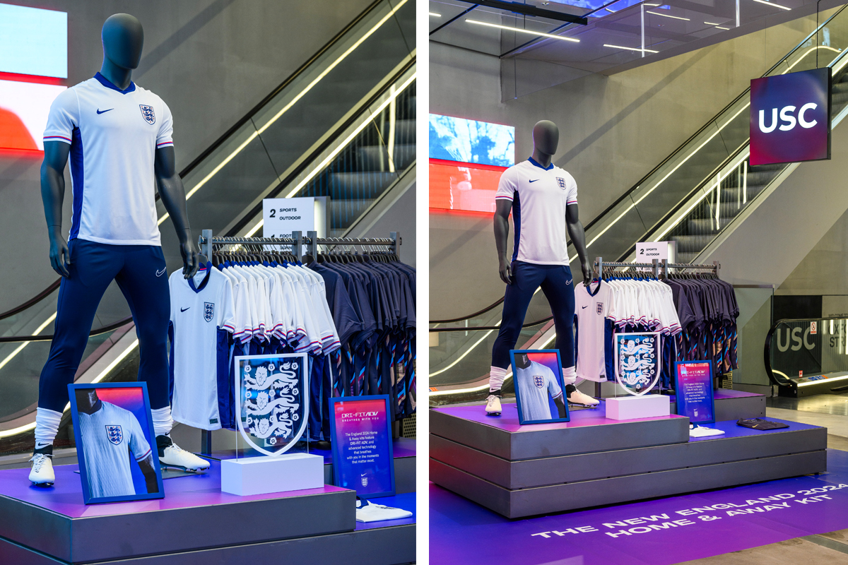 #war celebrated the launch of the Nike England campaign at Sports Direct’s flagship stores in London, Birmingham, and Manchester. Featuring striking window displays, custom shirt plinths, and bold internal POS, #WAR brought the energy of the team and the campaign to life with a cohesive and eye-catching in-store experience.