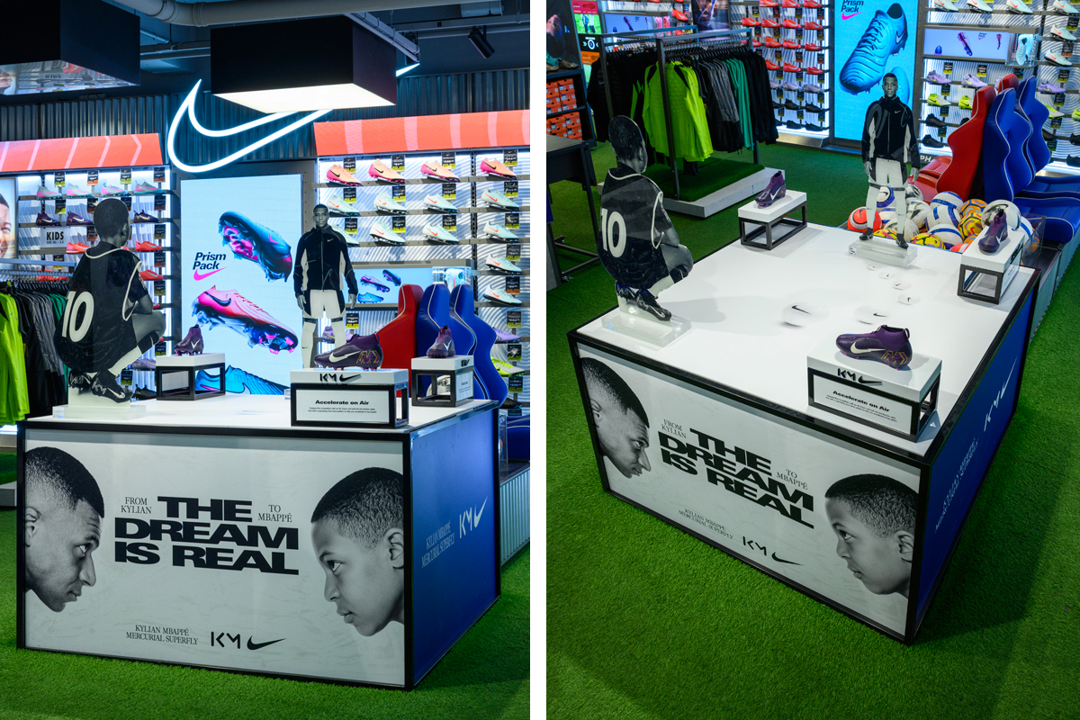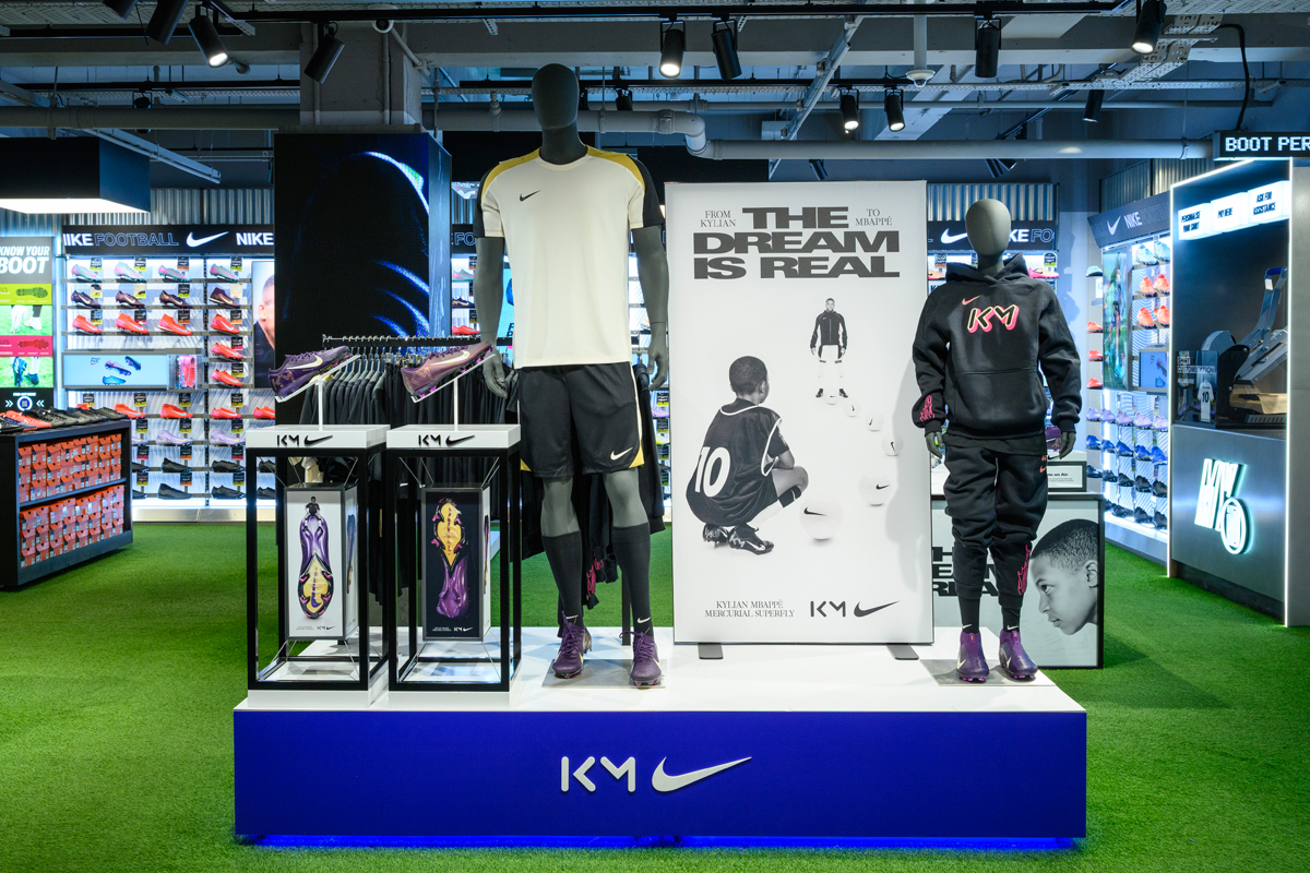 Designed, developed, and installed by #war the Nike – Mbappé campaign across Sports Direct flagship stores in London (Oxford Street), Birmingham, and Manchester. The project involved creating high-impact in-store displays that captured the energy and dynamism of Mbappé, while managing the technical execution across multiple locations. Each installation was tailored to the unique layouts of the stores, ensuring structural stability, precision alignment, and a seamless fit. Through careful planning and innovative fabrication techniques, the campaign delivered an engaging, visually striking experience that brought the Nike – Mbappé initiative to life for customers in key UK markets.”