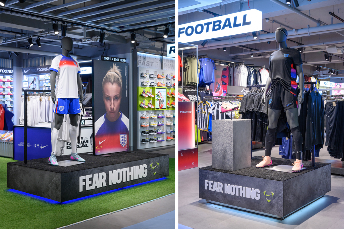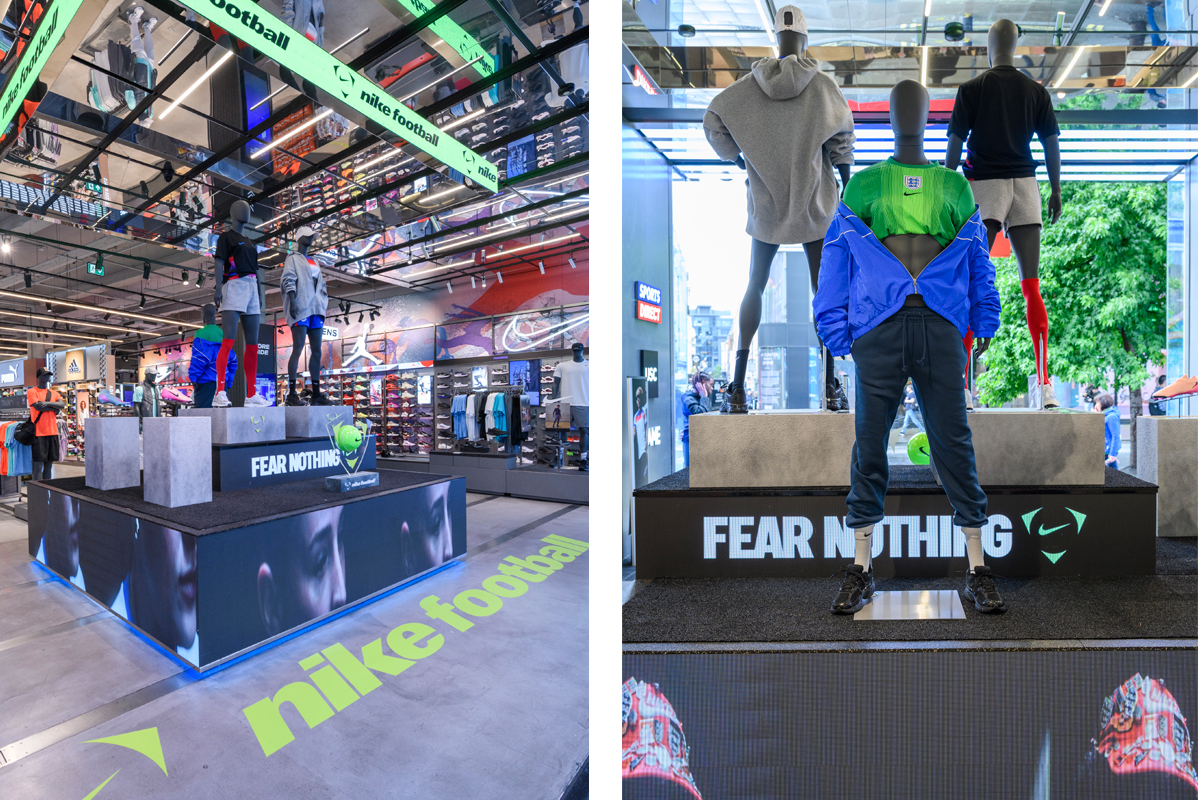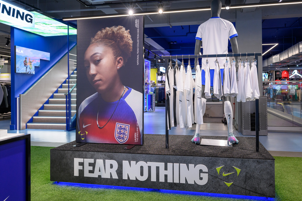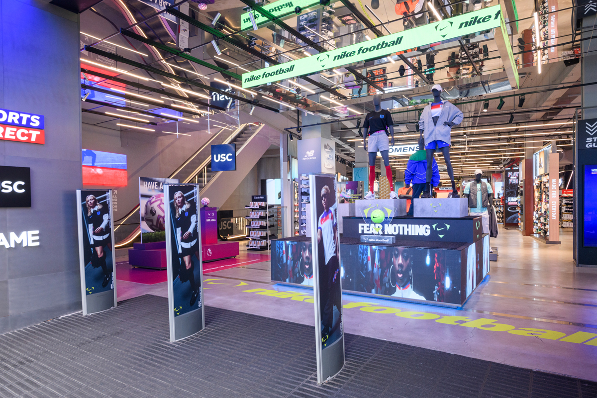 #war delivered the full rollout of the Nike NKT campaign for Sports Direct’s flagship stores in London, Birmingham, and Manchester, transforming high-profile retail spaces into dynamic brand environments. The project involved developing striking visual concepts, managing production, and coordinating large-scale installations to meet tight deadlines in busy city-centre locations. Each store presented unique challenges, from adapting the creative to suit different architectural layouts, to ensuring a seamless installation process with minimal disruption. The result was a cohesive, high-impact campaign that elevated Nike’s presence in key UK markets and enhanced the customer journey with bold, innovative brand storytelling.