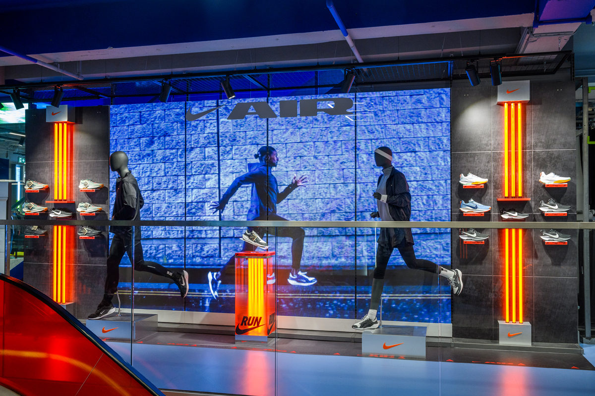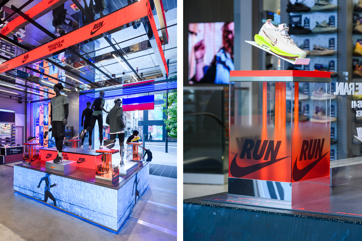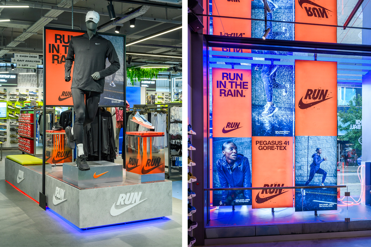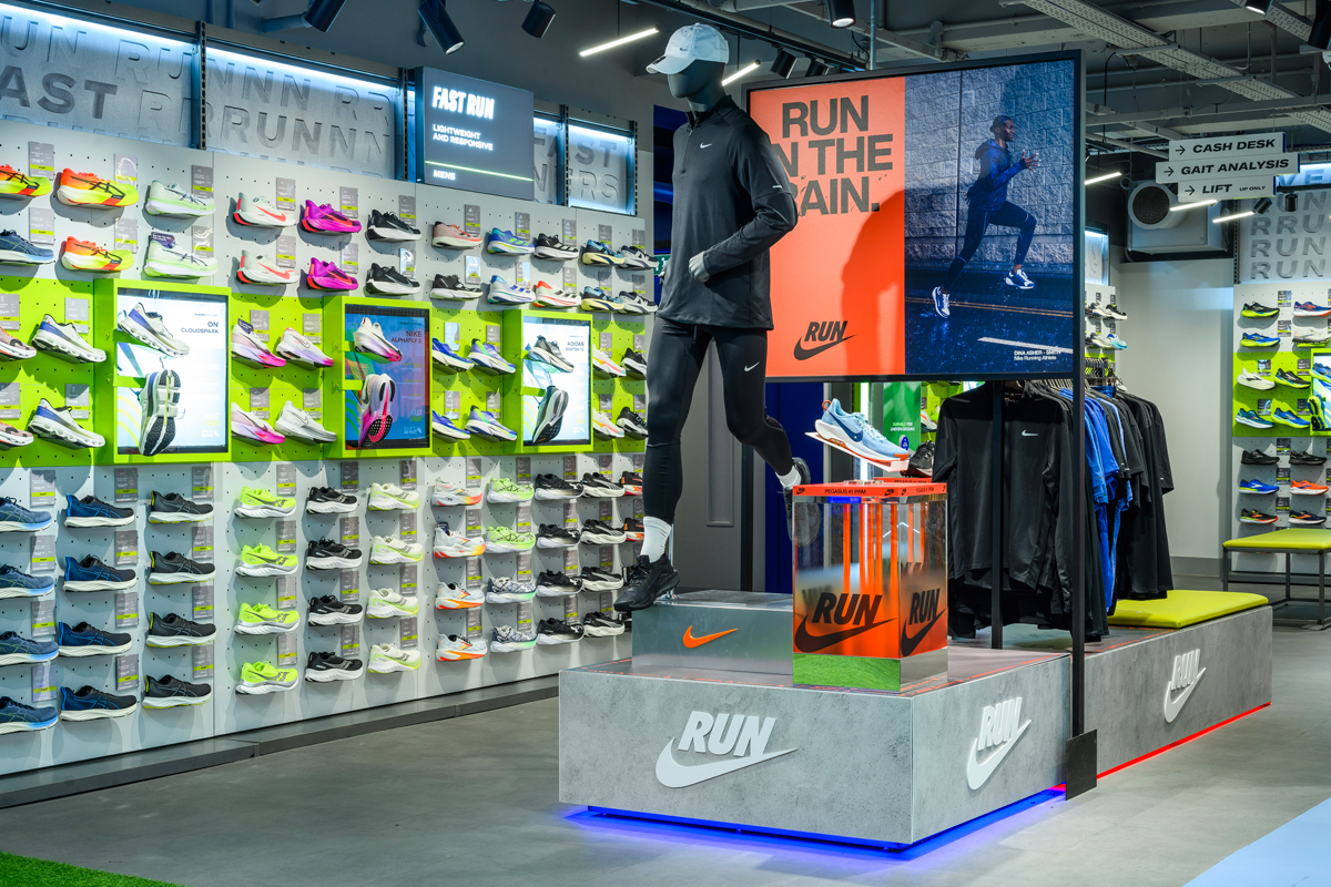 #war designed, developed, and installed the Nike Run campaign across Sports Direct flagship stores in London (Oxford Street), Birmingham, and Manchester, with a strong emphasis on precision fabrication and robust in-store installations. The project involved engineering displays that were both visually striking and durable, tailored to each store’s unique layout and foot traffic patterns. Every element was carefully planned and executed to ensure seamless integration, creating a technically sophisticated retail experience that highlighted Nike’s Run range and delivered maximum impact for customers.
