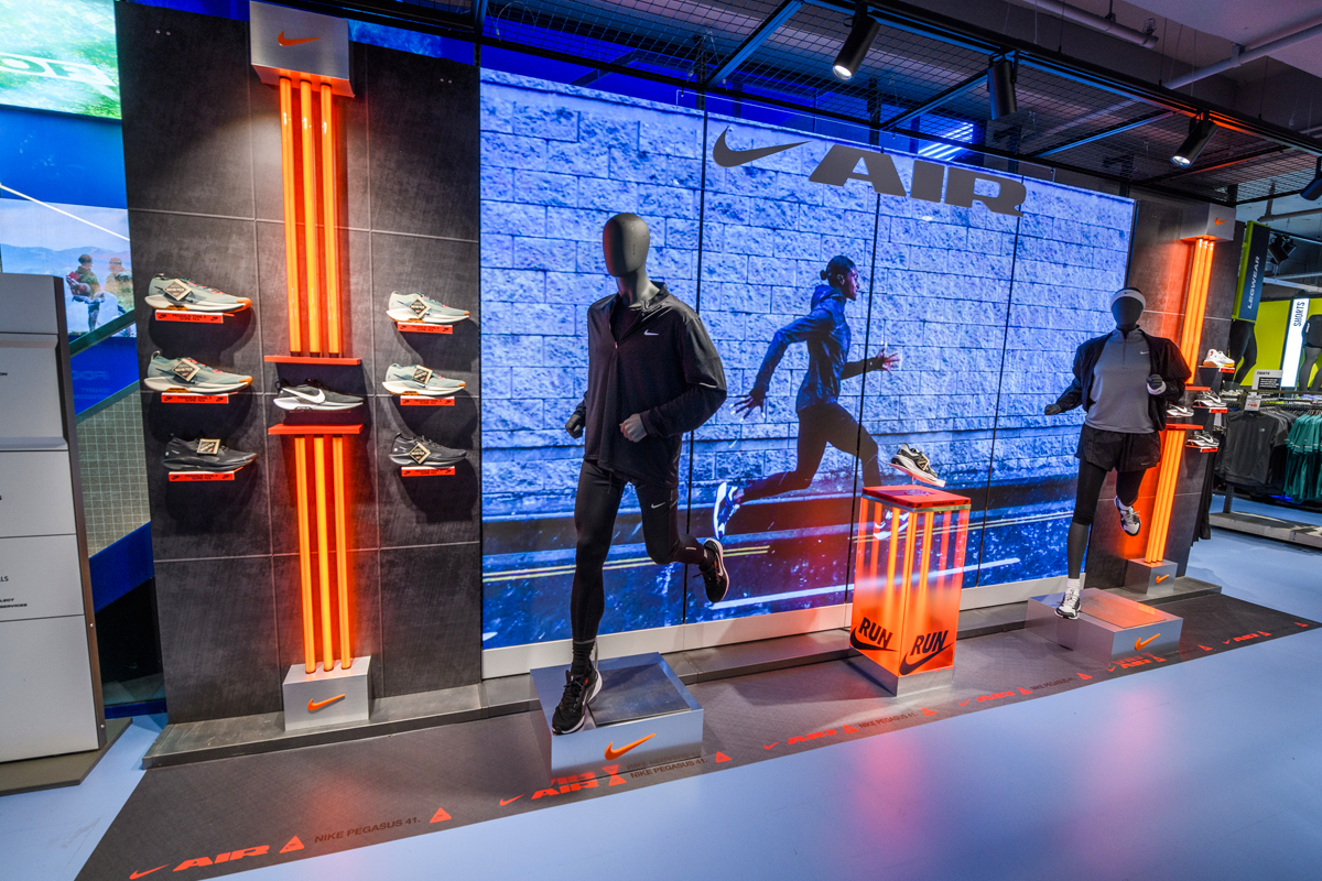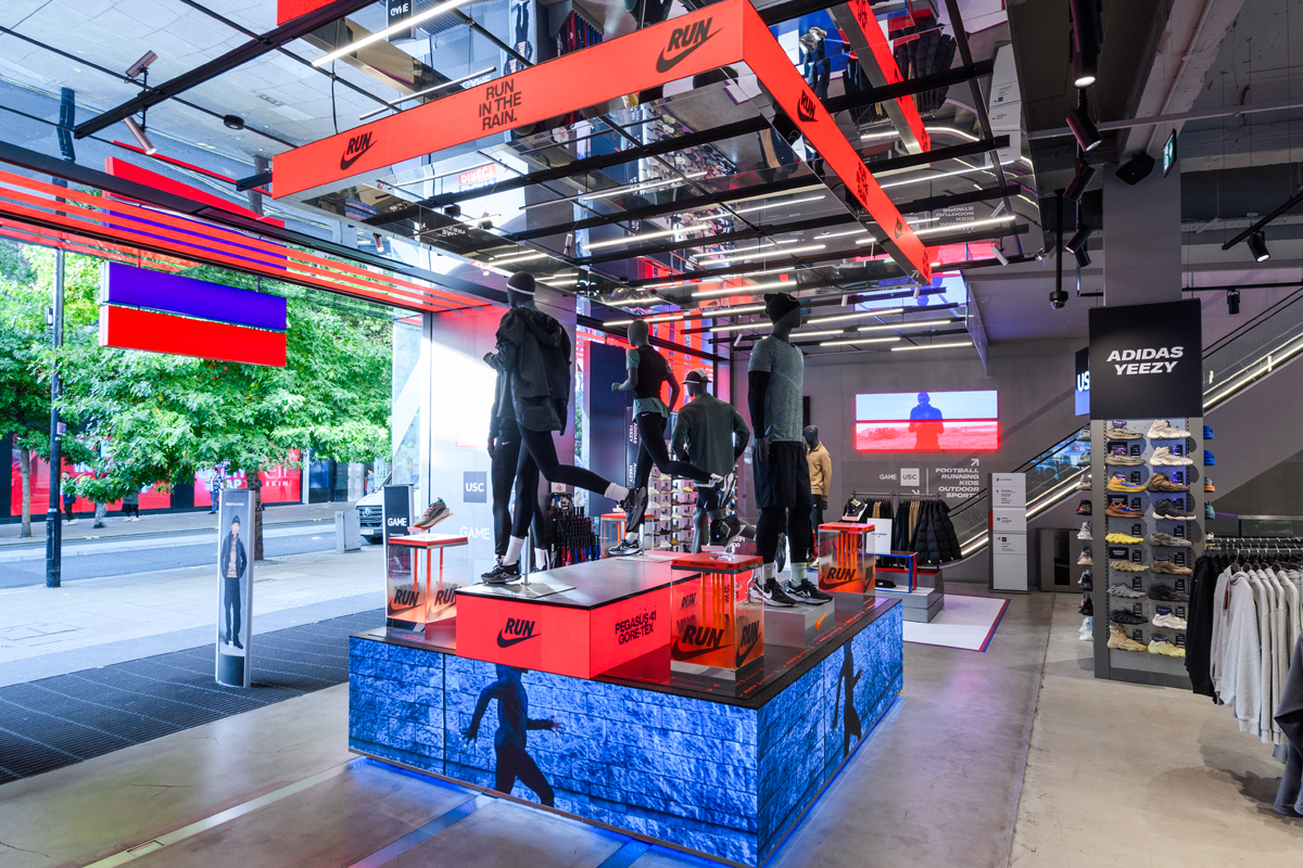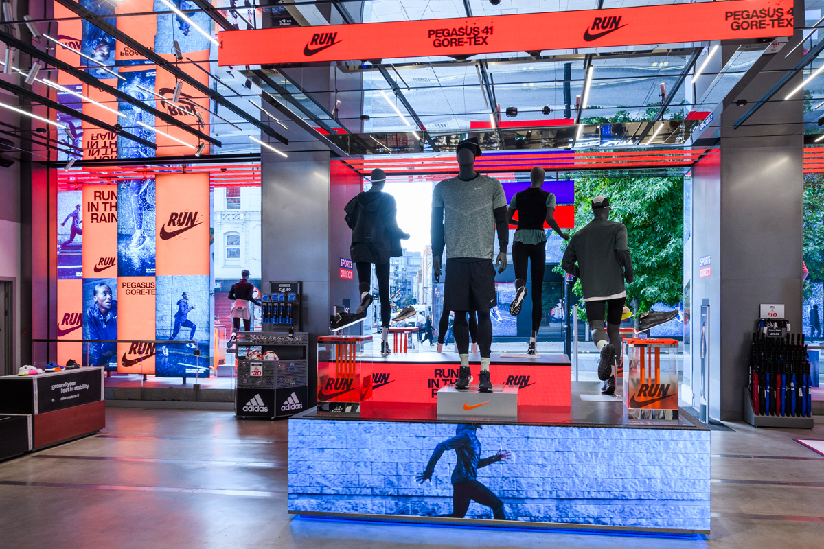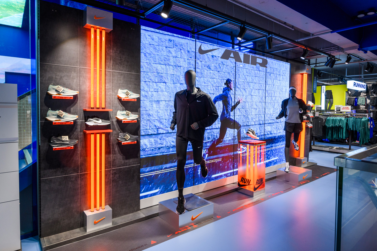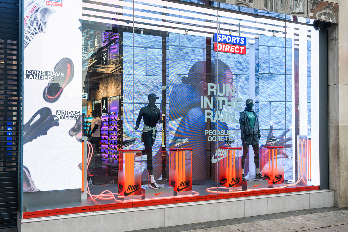 #war designed, developed, and installed the Nike Run campaign across Sports Direct flagship stores in London (Oxford Street), Birmingham, and Manchester, with a strong emphasis on precision fabrication and robust in-store installations. The project involved engineering displays that were both visually striking and durable, tailored to each store’s unique layout and foot traffic patterns. Every element was carefully planned and executed to ensure seamless integration, creating a technically sophisticated retail experience that highlighted Nike’s Run range and delivered maximum impact for customers.