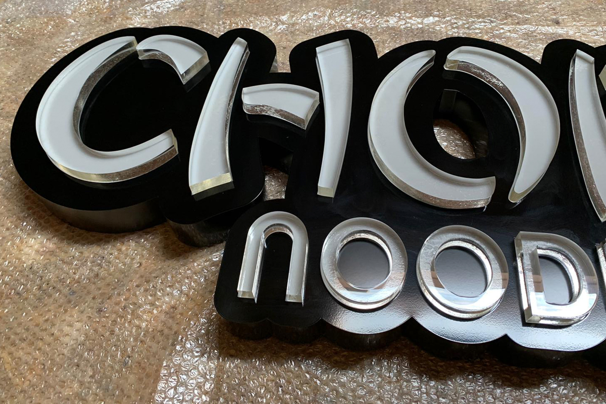 Chopstix are a rapidly growing brand providing eat-in and takeaway Pan Asian meals, with stores located nationwide. We Are Retail Creative Signage designed the Illuminated built up logo and counter graphics. These were set off the front of the site, with additional illuminated lettering, along with illuminated slogan signage behind the service counter. We installed Swirl noodle shaped vinyls onto an orange glass wall to complete the project.